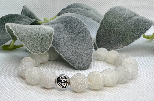 10mm Snakeskin Agate Beaded Stretch Bracelet with a Silver Bead. Gift for Him. Gift for Her.