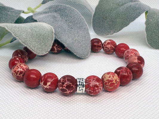 10mm Royal Imperial Jasper Beaded Stretch Bracelet with a Silver Spacer.