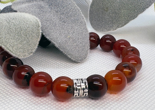 10mm Sardonyx Carnelian Beaded Stretch Bracelet with a Silver Spacer.