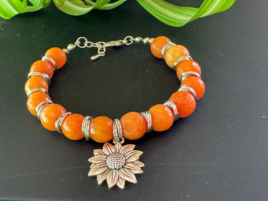 10mm Orange Aventurine Gemstone Bracelet - Orange Aventurine Gemstone bracelet with silver spacers and hanging Seastar charm.